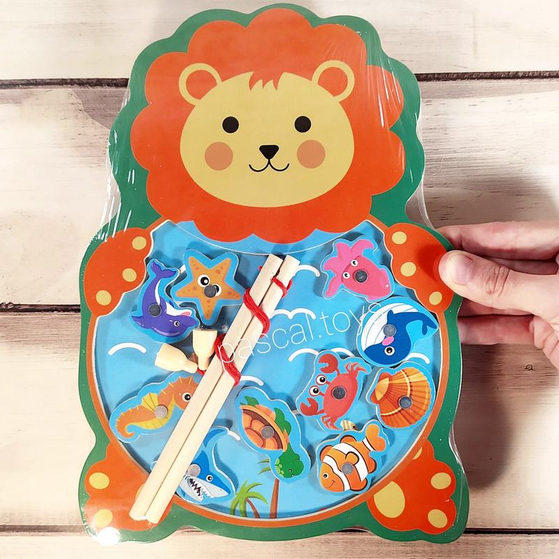 Деревянная магнитная рыбалка "лев", детская игра рыбалка