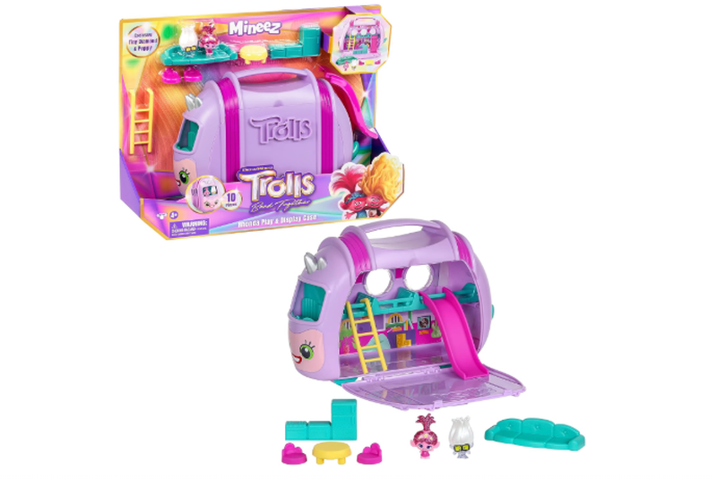 Знайомтесь, тролі Мінеез! Ви можете зібрати ПОНАД 100 чарівних тролів! Ігровий набір DreamWorks Trolls Band Together Rhonda Play & Display Case – це милий ігровий набір, який розкладається, показуючи маленький будиночок на колесах для колекційних фігурок Мінеза! У комплекті 2 фігурки Mineez розміром 1,5 дюйма - Поппі та надзвичайно рідкісний крихітний діамант! З безліччю цікавих ігрових аксесуарів, таких як меблі, кухня та навіть гірка. Коли ваша дитина закінчить гратися, вона зможе зберігати всі аксесуари та фігурки всередині свого футляра. Ігрова вітрина Rhonda має зручну ручку для перенесення, щоб ваша дитина могла брати її з собою та гратися будь-де!