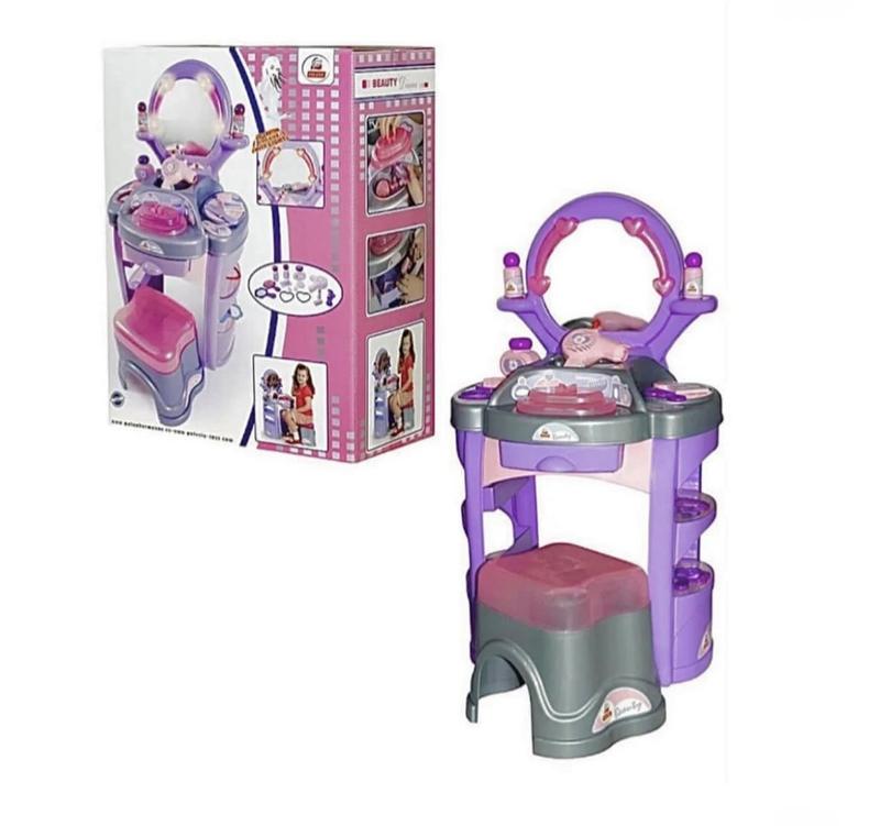 Ігровий набір для дівчаток Салон краси Діана від Polesie (43146) Комплектація: -туалетний столик з видвижними шухлядами та поличками -стільчик -дзеркало з підсвіткою -шкатулочки -фен -2 гребінця -3 флакончики -дзеркальце маленьке -2 браслетики -кліпси -імітація помади,тіней та пудри Розмір корпуса 47,5*46*82 Розмір стільчика 29*26*25,8 Рекомендований вік від 3 років