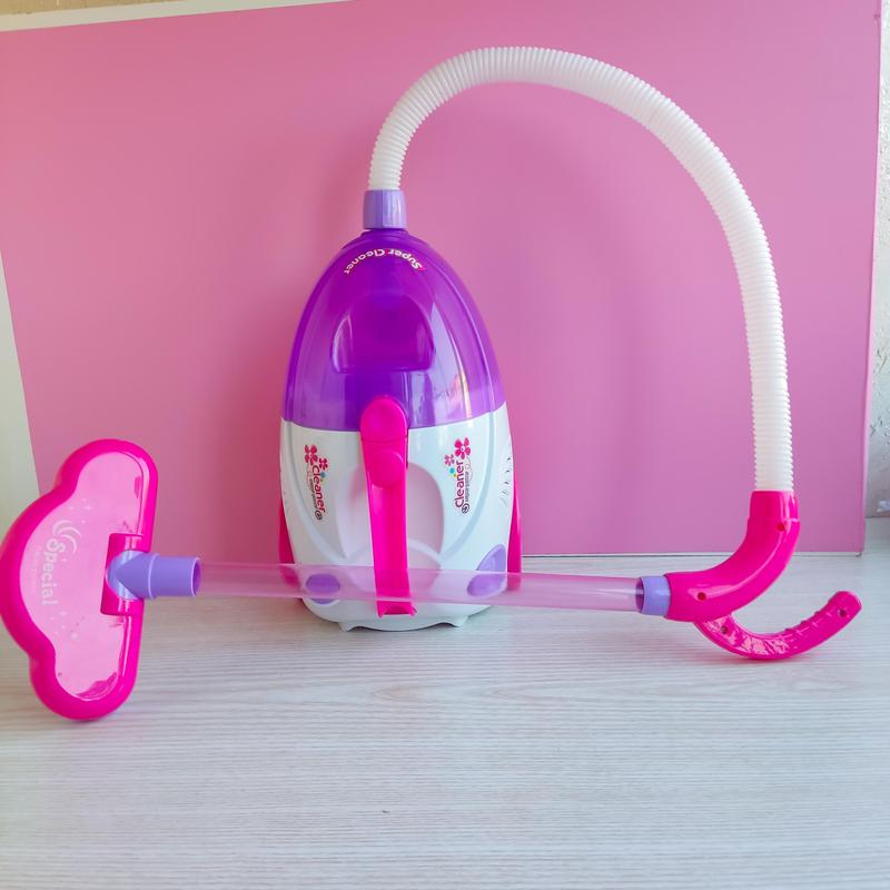 Новый пылесос, имеет в наборе легкие шарики для игры в уборку. Работает от батареек.