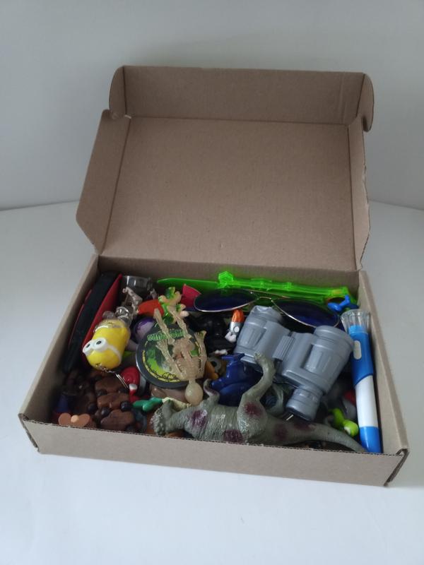 Всевоздушные, изящные маленькие фигурочки, что из киндера, из магазина, из макдональдса... Все будет интересно вашему малышу, врутив ему эту не очень большую коробочку но с очень многими забавными игрушками, малыш еще долго будет увлекательно рассматривать изюминки. В коробочку шли еще также немножко магнитов из личной коллекции, ручка фонарик работает, солнечные очки, безопасный нож-спиннер, значок с динозавром, брелок посипака работает но нужные батареечки. Цена за все вместе.