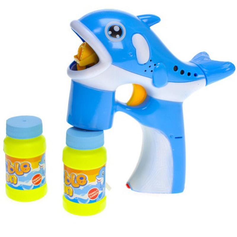 Мыльнопузырный пистолет дельфин для детей с батарейкой и жидкостью, веселая игрушка на ули...
