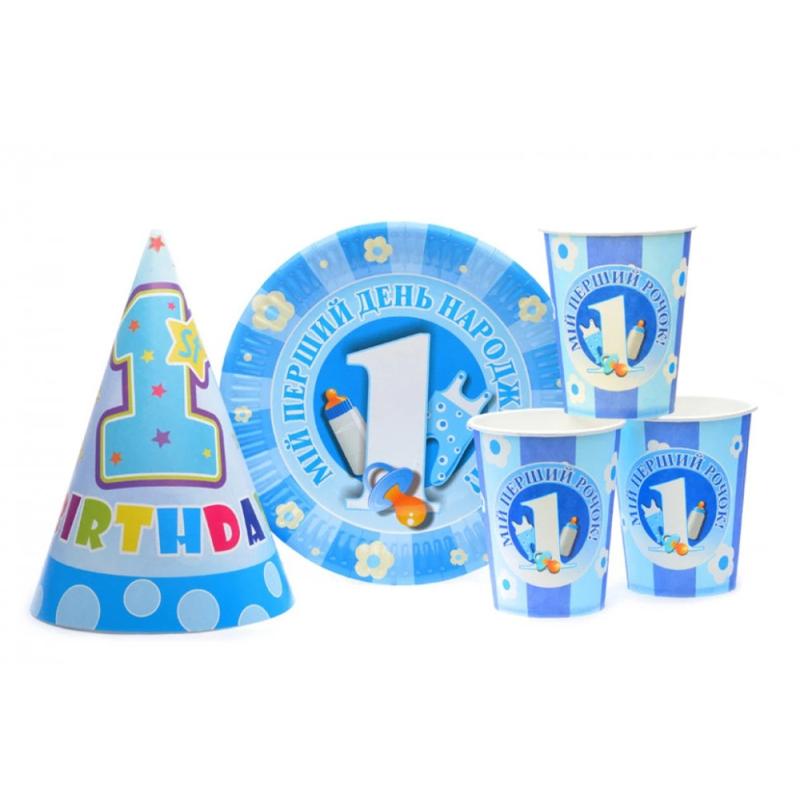 Набір посуду з ковпачками "1-й рік" блакитний 8020-0015 на 10 осіб