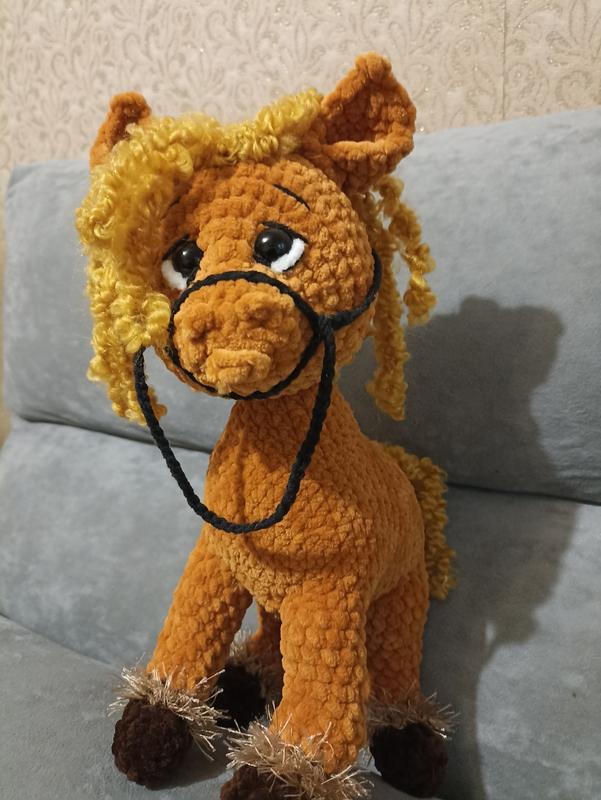 Лошадка изготовлена из качественной плюшевой пряжи. Рост 31 см с ушками. Голова поворотная. Игрушка приятная на ощупь-мягкая. В наличии.Вращайтесь. Работаю с укроштой на новой почте. Повна оплата на ФОП.