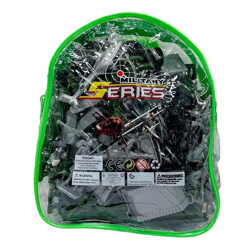 Набор солдатиков "Армия имела в рюкзаке" (76 элементов) – это большой игровой комплект для увлекательных баталий и стратегических игр. В прозрачном рюкзаке удобного формата собрано 76 различных элементов, создающих полноценное военное поле боя. В комплект входят: фигурки солдат двух армий боевая техника: танки, вертолеты, грузовики оборонные сооружения, башни, заборы, мешки с песком тематические аксессуары: деревья, флаги, дорожные знаки и прочее Все детали изготовлены из безопасного пластика, имеют удобный размер и детализированный вид. Благодаря рюкзаку с ручками набор легко брать с собой в путешествие, на улицу или к друзьям. Этот набор развивает воображение, логику, сюжетное мышление и станет отличным подарком для маленьких стратегов и ценителей военных игр.