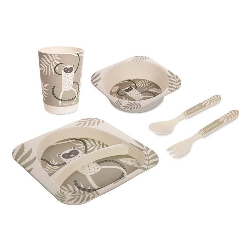 Игровой набор с посудой Canpol babies LEMUR — бамбуковый Великолепный набор для веселых ролевых игр, приглашающий ребенка в мир воображаемых чаепитий и пикников с любимым лемуром. Мягкий, привлекательный дизайн и нежные цвета делают игру еще приятнее, а натуральный вид материалов придает тепло и комфорт. Экологический подход сочетается с безопасностью – набор создан из материалов, напоминающих натуральный бамбук, и имеет аккуратные формы, удобные для маленьких ручек. Это идеальный вариант обучения через игру: ребенок отрабатывает мелкую моторику, учится делиться и подражать взрослым. - Яркий дизайн — персонаж лемур делает игру увлекательной и эмоциональной. - Натуральный вид — теплые оттенки и текстура создают чувство естественности. - Удобные формы для маленьких рук и безопасные края. - Поощряет ролевые игры, воображение и социальные навыки. - Легко сочетается с другими игрушками и создает наборы для игры. Этот набор — отличный подарок для творческих и любознательных детей, который дарит часы веселья и обучения, оставаясь стильным и приятным на ощупь.