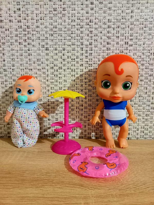 Пупсы с зонтиком и надувным кругом. Больше пупс 17 см. Меньше 14 см с пустышкой ( вынимается)