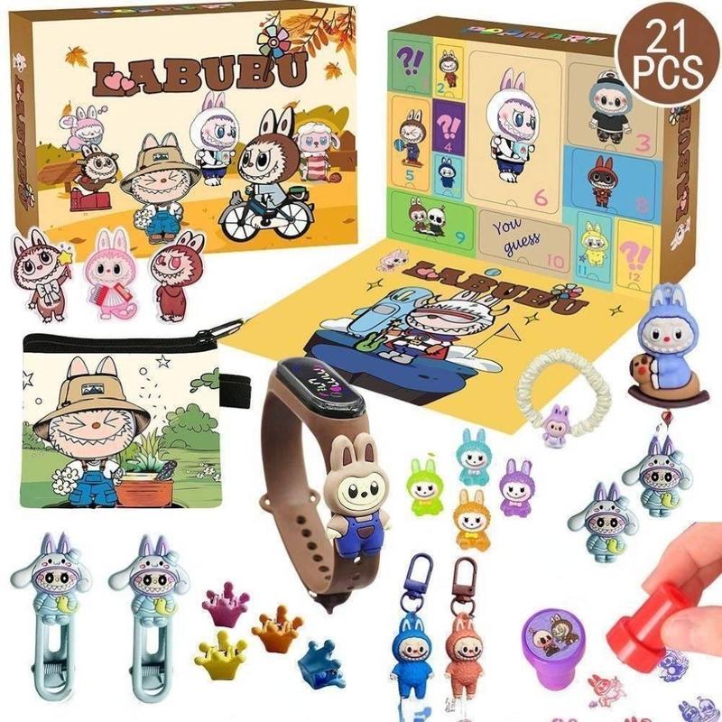 ✨Дитячий адвент календар Лабубу з іграшками аксесуарами 12 віконців 21 подарунок - 12 віконців із тематичними аксесуарами іграшками прикрасами в стилі Лабуба - 21 подарунок - Для фанатів Labubu - розмір 26 см × 5,5 см × 20 см - ідеальний подарунок на свята - розпаковка принесе незабутні враження та радість дітям