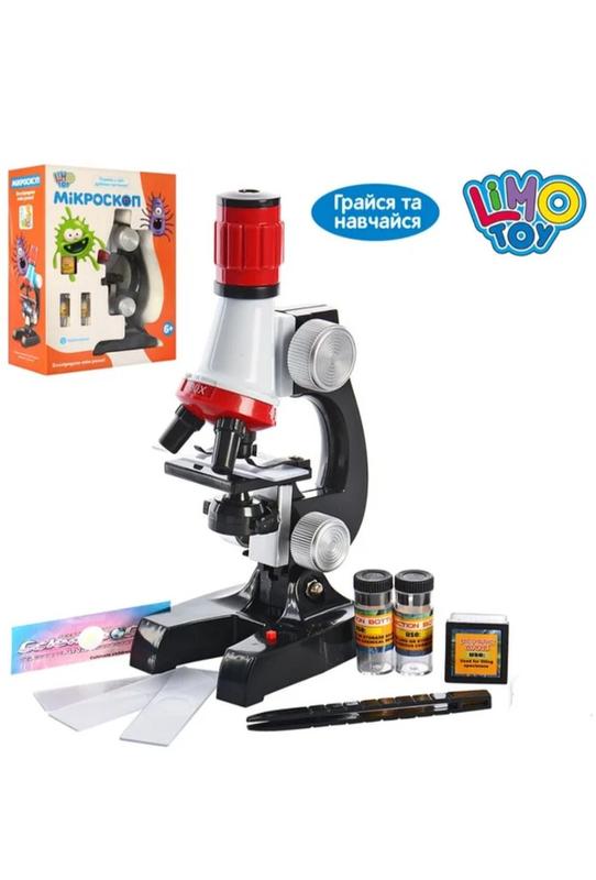Даний мікроскоп нічим не поступається шкільному аналогу і ви в домашніх умовах можете проводити цікаві дослідження з біології. Цибулева шкірка, людська волосина, мушка дрозофіла в 100, 400 і навіть 1200х кратному збільшенні захоплять вас і вашу дитину в світ досліджень і відкриттів. Набір, простий у використанні і багатофункціональний. У наборі: етикетки, пінцет, колби для зразків, пластиковий контейнер, зразки предметних стекол. Для роботи мікроскопа необхідно 2 батарейки типу АА (у комплект не входять). Розмір упаковки: 19 х 24 х 8,5 см Упаковка: Коробка