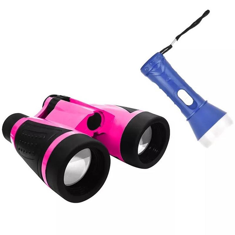 Игровой набор для настоящих любителей приключений. Набор имеет интересный дизайн и яркие цвета. Корпус изготовлен из пластика, а линзы из оптического пластика который является ударопрочными. Бинокль прост в эксплуатации и безопасен для ребенка. Фонарик хорошо светит и имеет шнурок для удобного крепления. В наборе: бинокль и фонарик. Размер коробки 13 * 7 * 22 см.