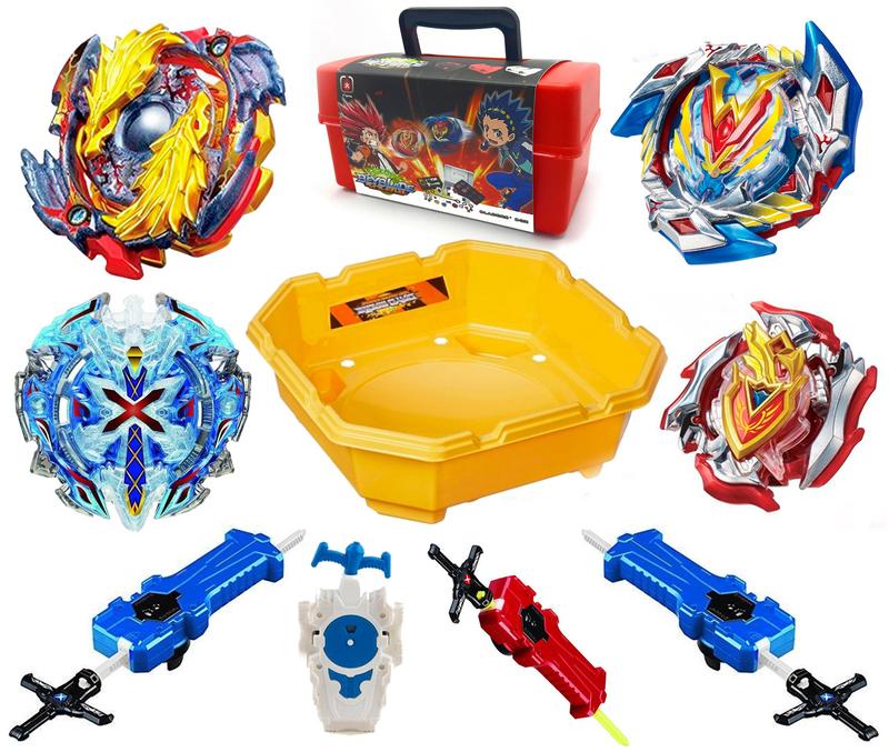 В КОМПЛЕКТ ВХОДИТ - 4 БЕЙБЛЕЙДА - 4 ЗАПУСКНЫХ МЕХАНИЗМА - 1 АРЕНА 40см диаметр гипоалергеный очень прочний пластик (Не Лопает) - 1 БЕЙБЛЕЙД БОКС ДЛЯ ХРАНЕНИЯ БЕЙБЛЕЙДОВ НА 8 БЕЙБЛЕЙДОВ СУПЕР ПРЕДЛОЖЕНИЕ Бейблэйд - развлечение для детей любого возраста BeyBlade это современный «волчок», который запускается с помощью пускового механизма. Во время игры несколько участников одновременно бросают их на поле, где они сталкиваются между собой. Побеждает участник, волчок которого не разлетелся на части и крутился дольше. Бейблэйд (BeyBlade) - легендарная игрушка, которая появилась в далекие 90 в Азии, в результате объединения идей по двум проектам, основанным на идеи игрушек с вращающимися вершинами.В процессе разработки игрушки, производители привлекли к работе японского автора, который создал серию комиксов, что повлекло за собой колоссальный успех как игрушек, так и книжки. В дальнейшем по мотивам комикса был снят аниме-сериал и выпушено 12 игр. Размер коробки 42х42х20см