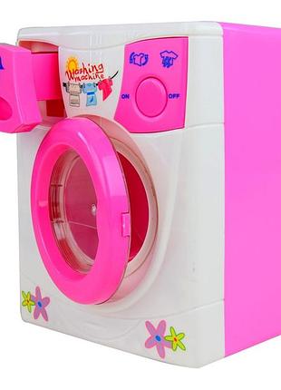 Детская стиральная машина станет любимой игрушкой и отличным подарком для девочки. Маленькая хозяюшка сможет стирать свои вещички и следит за чистотой одежды любимых кукол. Она работает почти также, как настоящая стиральная машина. Загрузите в барабан бельё, залейте в специальное отделение воду и просто нажми на Пуск. В стиральной машинке крутится барабан, есть отсек для воды, шланг для сливы воды и в комплекте 2 вешалки. А также реалистичный звук, световые эффекты. Работает от 2 батареек типа АА (в комплект не входит). Размер стиральной машинки 15 * 11 * 20 см. Размер коробки 20 * 14 * 22 см.