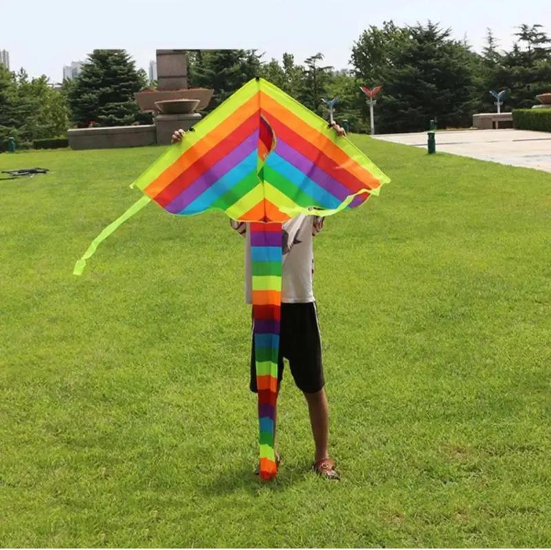 Воздушный змей - это не просто игрушка и развлечение, это целый увлекательный процесс, развивающий огромное количество умений ребенка. Детский воздушный змей Радуга обязательно станет любимой игрушкой не только детей, но и взрослых. Модель - яркая и эффектная. Змей выполнен в классической треугольной форме и имеет традиционный длинный хвост, который непревзойденно смотрится в воздухе. Летучий змей подходит как для активного отдыха, так и для детского праздника. Его просто собрать. Для этого необходимо вставить спицу-распорку в специальные отверстия на внутренней стороне змея. Затем - протянуть стропы из рукоятки в петельку и закрепить. Немного ветра и змей парит в воздухе! Длинная крепкая леска и удобная катушка позволят отлично контролировать высоту полета. Запуск воздушного змея станет прекрасной семейной традицией для времяпрепровождения на свежем воздухе. Игрушка добавит яркости и веселья в активные детские игры. Размеры змея: длина - 67 см, ширина - 130 см, хвост - 150 см. Для детей от 3 лет. Размер упаковки: 90*10*1 см.