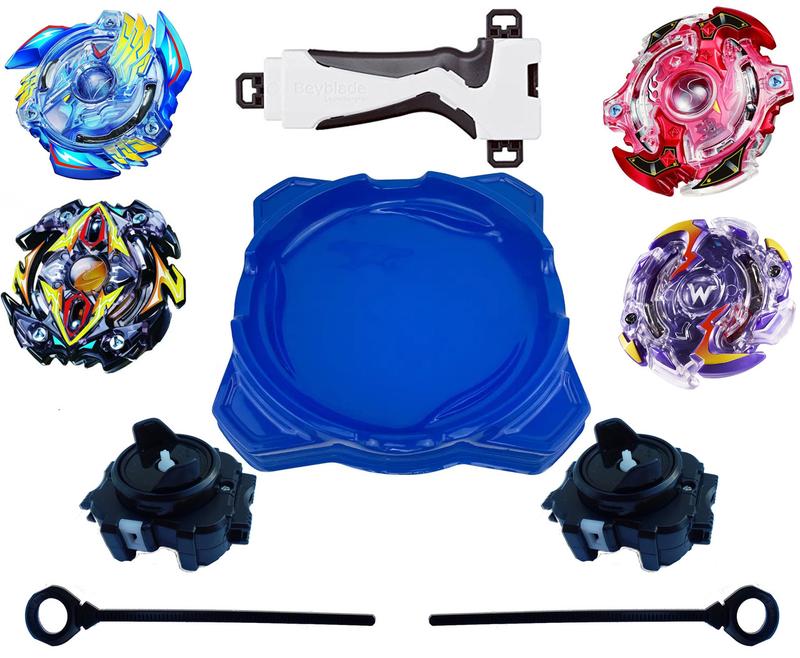 Бейблейд набор topgyro 8 в 1 арена синяя 34см + 4 волчка + 2 запускача + 1 ручка 300187