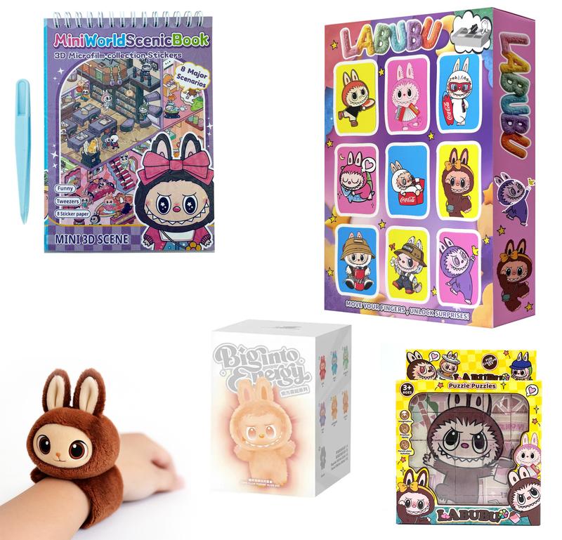 Набор LABUBU 5-в-1 • Коллекционные Игрушки POP MART Style Брелок 18 см + Браслет + 3D Румбокс + Адвент 9-в-1 + Магнитный Пазл 6-в-1 Подарочный набор LABUBU 5-в-1 — это универсальный комплект самых популярных игрушек в стиле POP MART / The Monsters. В набор входят мягкий брелок 18 см, браслет-игрушка, 3D Румбокс-книга с 8 комнатами и более 300 наклейками, адвент-календарь с 9 сюрпризами и магнитный пазл 6-в-1. Набор подходит для детей, фанатов LABUBU, коллекционеров и как праздничный подарок. 1. Мягкая игрушка брелок LABUBU — 18 см Милый брелок из гипоаллергенного плюша с реалистичным ПВХ-лицом. Имеет кольцо-крепление на спине. Доступны разные цвета (отправляются рандомно). Подходит как аксессуар на рюкзак, сумку или ключи. 2. Плюшевый браслет-игрушка LABUBU — 20 см Мягкий браслет с гибкой пластиной внутри, которая оборачивается вокруг руки одним движением. 7 вариантов персонажа. Яркий, безопасный и веселый аксессуар. 3. 3D Румбокс LABUBU Mini World — 8 комнат, 300+ наклеек Интерактивная книга с локациями, в которой можно создавать собственные сцены с помощью 300+ наклеек. В комплект входит пинцет. Комнаты: Магазин, Мастерская, Океанариум, Игровой зал, Кондитерская, Астрология, Комната Портного, Мороженое. 4. Адвент Календарь LABUBU 9-в-1 (YL7500) Набор-сюрприз с 9 окошками. Внутри могут быть фигурки, брелоки, браслеты, ленты, ланьярды и мини-аксессуары. Формат blind box — разные комбинации. 5. Магнитный пазл LABUBU 6-в-1 — 25 кубиков Магнитный пазл из 25 кубиков (5×5), из которых собирается 6 разных картинок в стиле LABUBU. Кубики магнитные — пазл не распадается. В комплекте есть карточки-подсказки. Характеристики набора: • Формат: Набор 5-в-1 • Стиль: LABUBU / The Monsters • Возраст: 3+ • Состав: брелок 18 см, браслет, 3D румбокс, адвент 9-в-1, пазл 6-в-1 • Материалы: плюш, ПВХ, ABS, картон, магниты • Упаковка: подарочная