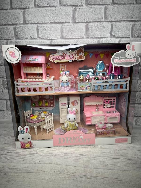 Семейная кофейня трудолюбивых зайчонок оказывает гостеприимство малышу на дегустацию разнообразных вкусностей. Изысканный стиль, в котором оформлен волшебное заведение, сразу вызовет восхищение ребенка. Маленькие ценители прекрасного будут приятно поражены обилием интересных и необычайно красивых игровых элементов. К тому же, компактный набор не будет занимать много места в комнате и станет уютным пространством для увлекательных игр дома. Особенности: - коробка представлена в виде двухэтажного картонного домика; - каждый этаж оснащен различными игровыми элементами; - на первом этаже расположена кухня со столом и холодильником; - на втором этаже оснащен кафетерий со сладостями; - набор дополнен двумя фигурками зайчонок; - каждый элемент мебели выполнен очень реалистично и максимально детализировано; - игрушки окрашены в стильное сочетание белого и розового цветов; - набор изготовлен из качественного, износостойкого пластика, безопасного для здоровья ребенка; - в комплекте также представлены разнообразные предметы интерьера. Размер упаковки 38*32*14 см