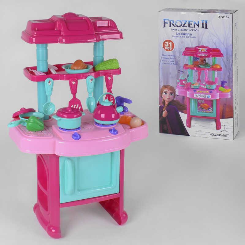 Игрушечная кухня фрозен розовая для девочек плита, посудка 31 аксессуар
