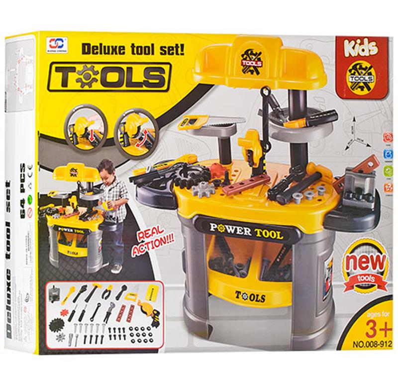 Все ребята хотят походить на папу, и очень любят чинить-мастерить. Потому игровой набор инструментов станет отличным подарком для ребенка. С его помощью он не только будет увлечен игрой, но и познакомиться с рабочими инструментами и их назначением, разовьет мелкую моторику рук и координацию движений, внимание и воображение, мышление, логику, усидчивость. Все входящие в набор инструменты по сходству максимально приближены к настоящим. В набор входит 50 деталей: столик для инструментов верстак лоток для инструментов болты гайки молоток пила разводной ключ гаечный ключ накидной ключ отвертка тиски плоскогубцы крепежные детали и прочее... Материал: пластик Размер в собранном виде 66х30х68 см. Размер коробки: 58х46х13 см. Рекомендуемый возраст: 3+