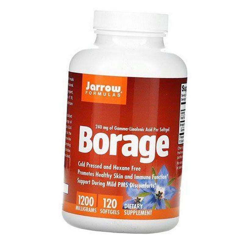 Borage от Jarrow Formulas - получен методом холодного прессования, не содержит гексана, поддержит здоровье кожи и иммунной системы, облегчает дискомфортные проявления ПМС Состав: Состав на порцию - 1 капсула: Калории 10 Всего жиров 1 г Масло из семян бурачника (Borago officinalis) 1200 мг - Гамма-линоленовая кислота (ГЛК) 240 мг Другие ингредиенты: гамма токоферол (добавлен для сохранения свежести); капсула состоит из желатина, глицерина и очищенной воды. Не содержит пшеницы, глютена, сои, молочных продуктов, яиц, рыбы, моллюсков, арахиса и древесных орехов. Как принимать: Принимать по 1 капсуле 1–2 раза в день во время еды или в соответствии с рекомендациями квалифицированного медицинского работника. Хранить в прохладном сухом месте. Предупреждения: Не использовать, если у вас аллергия на какое-либо из соединений. Не превышать рекомендуемую суточную порцию. Проконсультируйтесь с врачом в период беременности или лактации. Пищевые добавки не должны использоваться вместо разнообразной и сбалансированной диеты. Хранить в недоступном для детей месте. Хранить в сухом и прохладном месте. Защищать от прямых солнечных лучей.