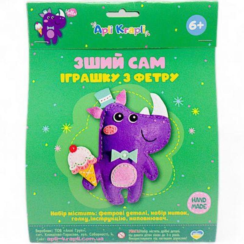 Набор для творчества украинского бренда "Апли Капли". С помощью деталей набора можно самостоятельно создать небольшую мягкую игрушку из фетра. В комплекте все необходимое: фетровые детали, набор нитей, игла, инструкция (на упаковке), синтетический наполнитель. Данный вид творчества отлично поможет развить у ребенка креативность, усидчивость, внимание, мелкую моторику рук. Изготовлен из качественных и безопасных материалов. Рекомендовано для детей старше 6 лет. Бренд: Аплі Краплі Упаковка: Пакет Цвет: Разноцвет Вес в упаковке: 67 г Габариты в упаковке: 21 x 16.5 x 5.5 см Cтрана производитель: Украина Материал: Комбинированный Комплектация: фетровые детали, набор нитей, игла, инструкция (на упаковке), синтетический наполнитель
