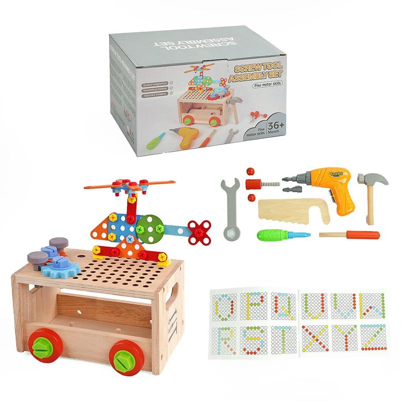 Набор инструментов c 65657 (12) деревянный, ящик, столярный верстак, электрический шурупов...