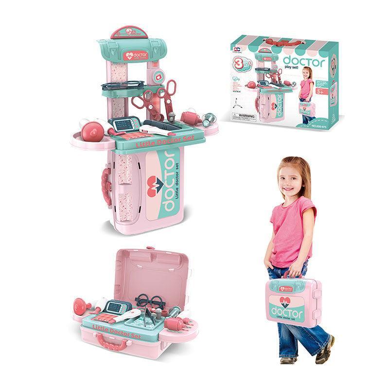 Набор врача 008-975 (24) 12 игровых элементов, чемодан, медицинская стойка, в коробке