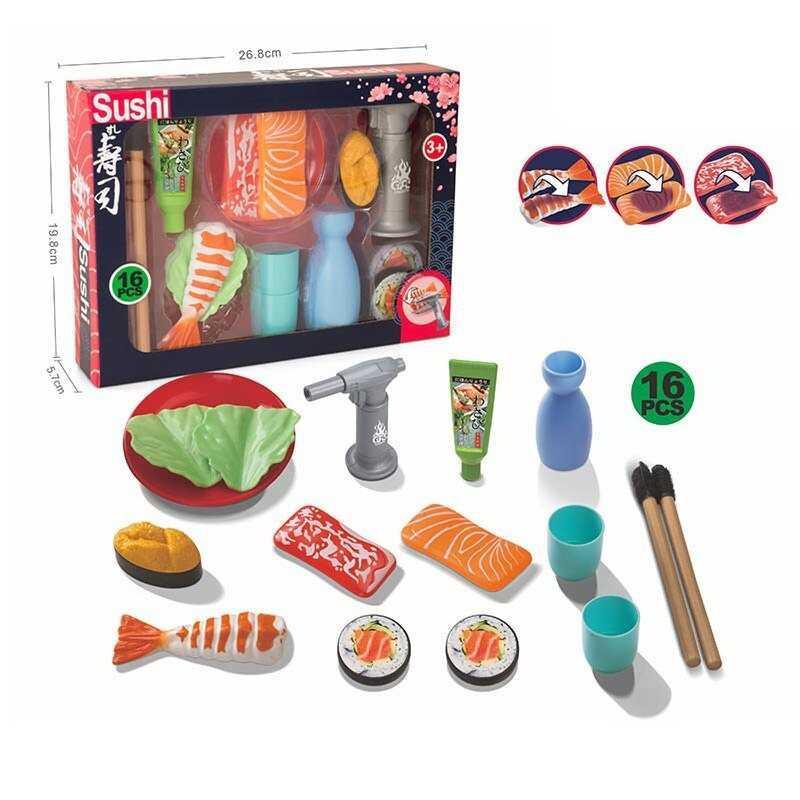 Детский игровой комплект xg 3-18 (24) суши с uv-горелкой, 16 элементов, в коробке