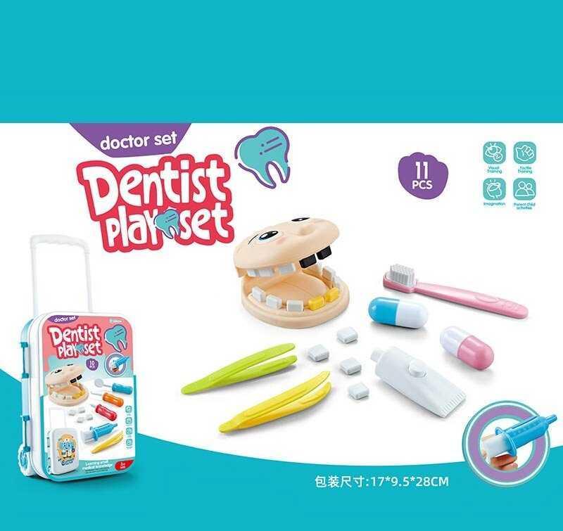 Познакомьтесь с удивительным набором детского стоматолога! Лечить зубы может быть увлекательно и весело! Этот игрушечный набор стоматолога станет отличным помощником для ваших детей, обучая их важности ухода за зубами. Специальный медицинский чемодан содержит все необходимое для проведения качественного осмотра и лечения. В комплект входят: - пациент с съемными зубами; - зубная паста для чистки; - зубная щетка; - лекарства в форме таблеток; - два щипца для лечения; - четыре зуба для обследования. Съемные зубы пациента позволяют юному врачу проводить осмотр с разных ракурсов, выявлять возможные проблемы и даже выполнять удаление. Этот набор поможет детям пройти весь этап стоматологических манипуляций: от первичной диагностики до лечения, развивая их воображение и навыки.
