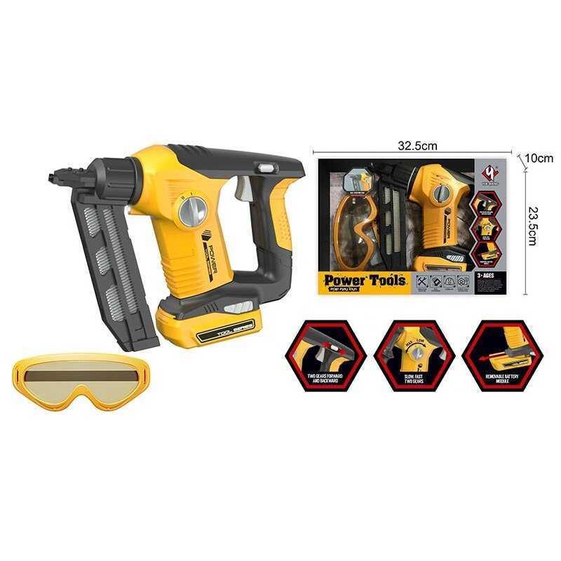 Готов ли ваш юный мастер к увлекательным приключениям? Представляем вам чудесный набор "Мастер на все руки", который включает в себя реалистичную модель гвоздезабивателя и стильные защитные очки. Этот игровой инструмент имеет встроенную подсветку и подвижные элементы, имитирующие процесс настоящей работы, обеспечивая ребенку незабываемые впечатления. Благодаря продуманному дизайну и функциональным возможностям, набор способствует развитию воображения, моторики и поощряет ребенка к творческим играм. Основные особенности: - Комплект включает гвоздезабиватель и защитные очки; - Встроенная подсветка для удобства использования; - Звуковая имитация забивания гвоздей для реалистичного опыта; - Размеры набора: 26х6.5х20 см; - Регуляция частоты "забивания" гвоздей для разнообразия игр; - Работает от 3-х батареек типа AA (не входят в комплект); - Изготовлено из прочного первичного пластика, что гарантирует долговечность.