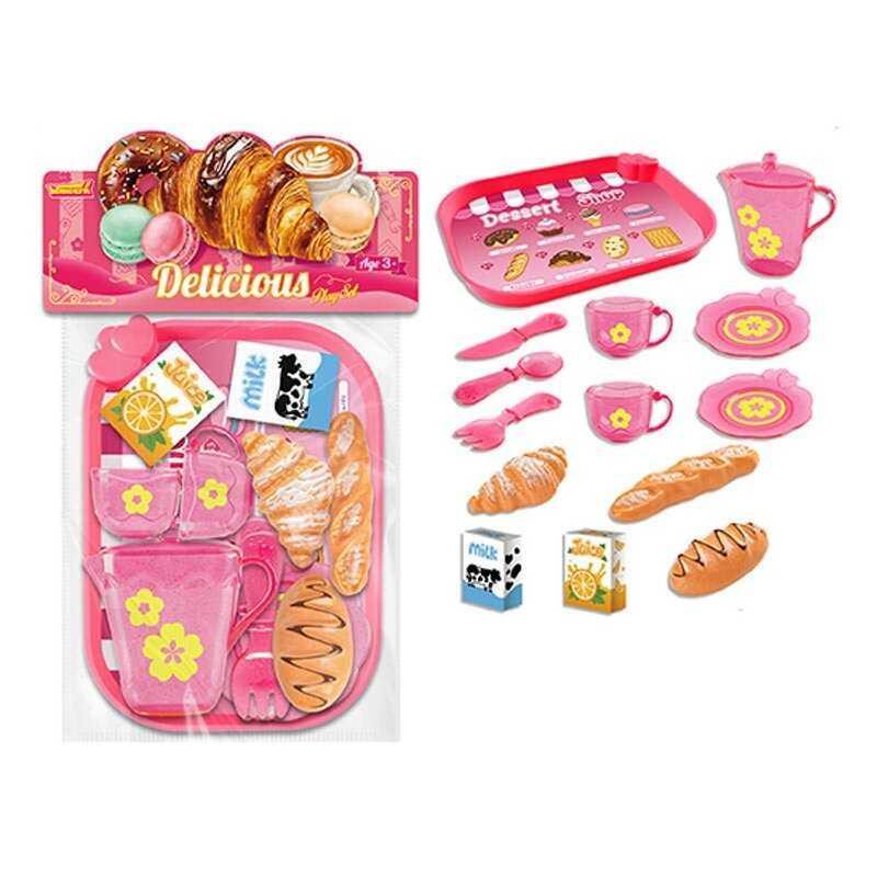 Погрузитесь в мир сладостей! Представляем вашему вниманию чудесный набор игрушечных десертов, который станет настоящей находкой для маленьких кулинаров! В этом ярком розовом комплекте вы найдете: - Кучу аппетитных десертов: круассаны, печенье и вкусные пирожные. - Очаровательные чашки и тарелки, которые добавят вашей игре еще больше веселья. - Картонные упаковки с молоком и соком для завершения игрового процесса. Этот набор идеально подходит для детей от 3 лет и поможет развить креативность и воображение во время игры. Позвольте своим малышам создать собственную пекарню!