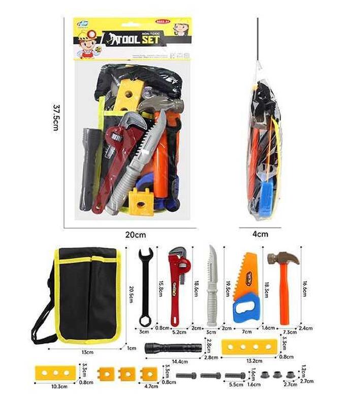 Развивающий детский набор инструментов NH 384-1 Яркий и безопасный набор инструментов в компактной сумке создан для маленьких мастеров, которые хотят освоить основы ремонта и строительства. Игровые инструменты изготовлены из легкого пластика без острых краев, что обеспечивает безопасность детей во время игры. - Сумка размером 20.5 × 20 × 4 см для удобного хранения и переноски набора - Разводной ключ длиной 15.8 см и гаечный ключ 15.3 см - Нож, пила и молоток для имитации настоящих ремонтных работ - Фонарик для дополнительной игры и исследования - Планки с отверстиями, болты и гайки для сборки конструкций - Развивает моторику рук, логику, воображение и координацию движений Идеальный выбор для активных детей, которые увлекаются творческими играми и познанием окружающего мира.