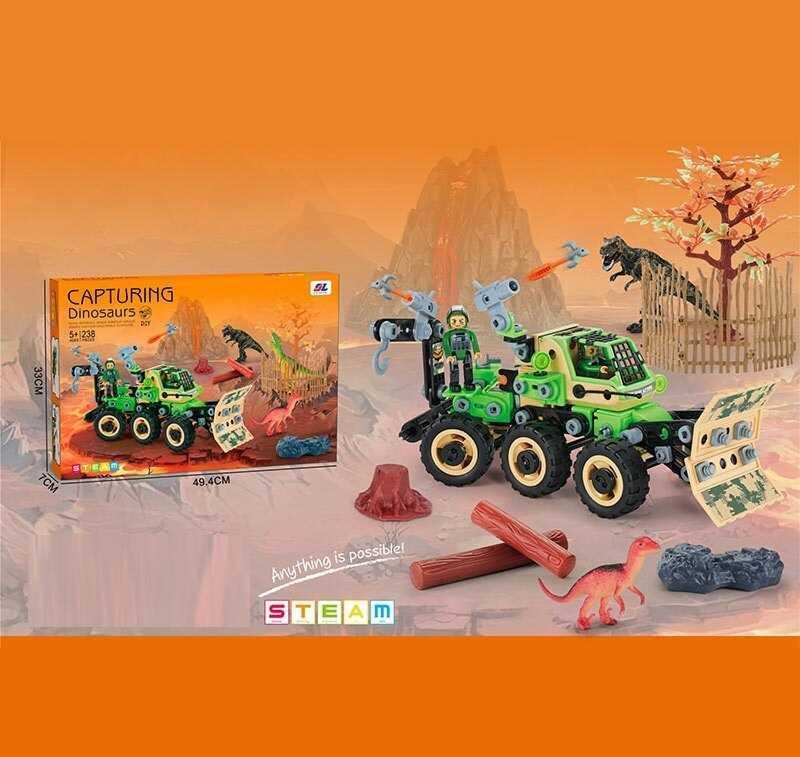 Уникальный конструктор с динозаврами J 6615 Этот конструктор позволит ребенку погрузиться в увлекательные приключения, собирая разнообразные машинки и механизмы из 238 пластиковых деталей. Детали крепятся с помощью винтов и гаек, что развивает моторику и понимание работы механизмов. - В комплекте инструменты для удобной сборки - Игровые фигурки динозавров для расширения игровых сюжетов - Тематические муляжи природной среды - Возможность собрать разную спецтехнику - Качественный пластик и надежные соединения