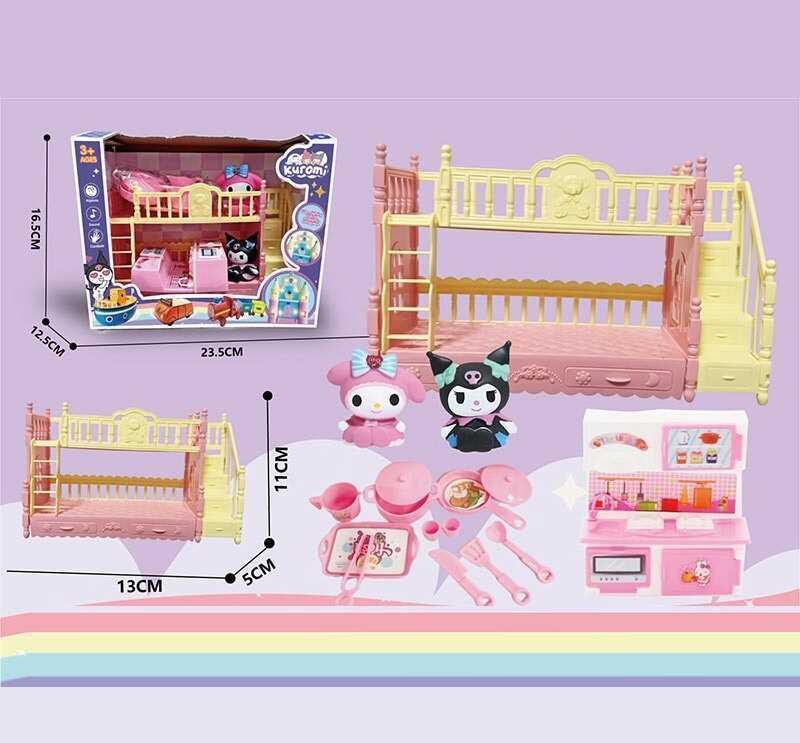 Развивающий игровой набор с двумя фигурками и мебелью Этот набор YQ 514 позволит ребенку создать уютное пространство для любимых героев. В комплект входят две фигурки высотой около 6,5 см, двухъярусная кровать с лестницей, кухня с разнообразными аксессуарами и посудой. Игра способствует развитию воображения, мелкой моторики и бытовых навыков. - 2 детализированные фигурки героев - Двухъярусная кровать с удобной лестницей - Комплект кухонной мебели и аксессуаров - Размер кровати: 22х8х14 см - Качественный и безопасный пластик - Идеально подходит для ролевых игр