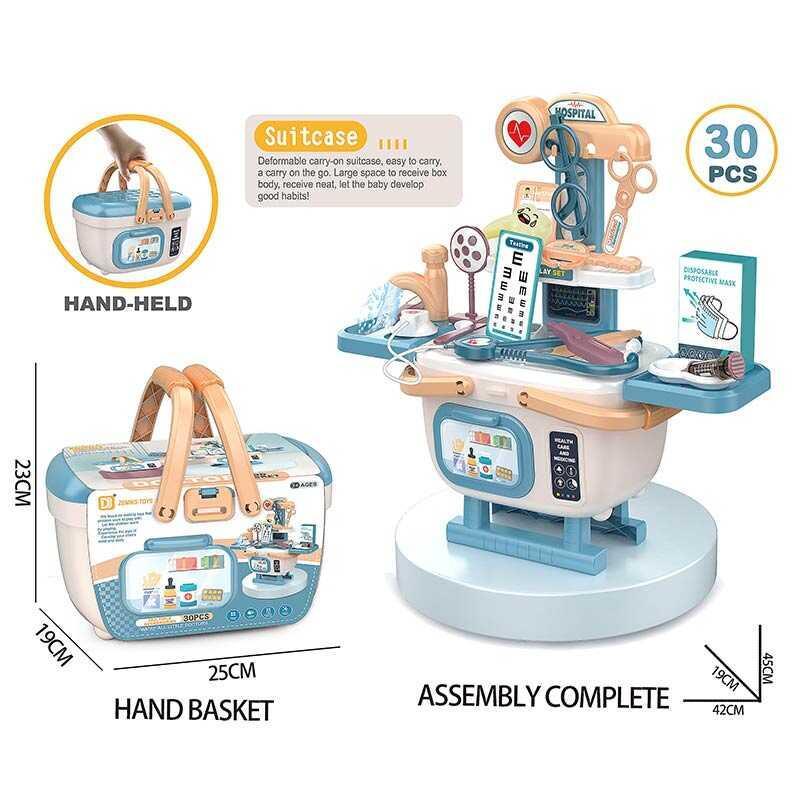 Детский комплект юного медика 8129 (36/2) с 30 предметами и столиком в коробке