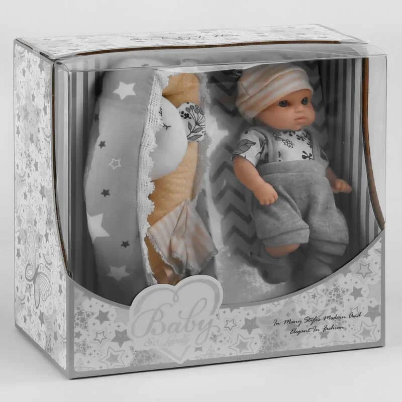 Реалистичный пупс 220-1 SB 9688 высотой 20 см Этот милый пупс в подарочной упаковке станет отличным подарком для каждой маленькой девочки. Игрушка имеет анатомически правильное строение тела с детальной прорисовкой пальчиков и складочек на коже, что делает её максимально похожей на настоящего младенца. - Выразительные серые глаза, маленький носик и пухлые щёчки придают образу живость. - Одет в серый комбинезон с рубашечкой, дополненный шапочкой с ушками и тёплыми носочками. - В комплект входит текстильный матрасик с мягкими бортиками, плюшевая подушка и полотенце для ухода. - Высокое качество материалов и дизайнерское оформление одежды. Идеальная игрушка для развития фантазии и ухода за «малышом».
