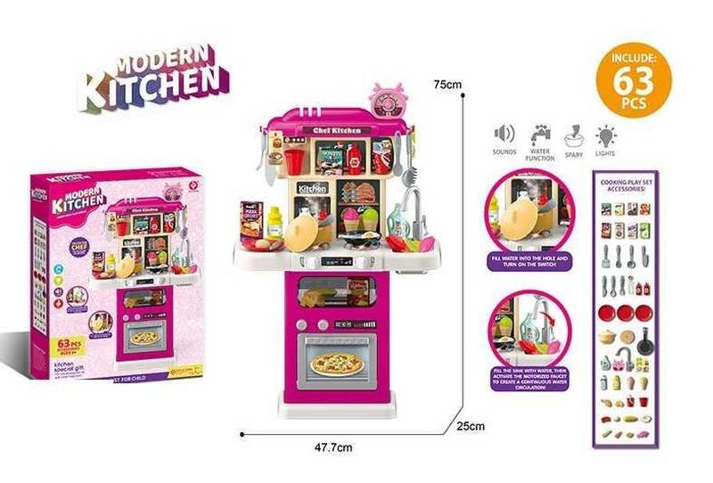 Реалистичная игровая кухня для маленьких поваров Эта игровая кухня модели 922-185 станет любимой игрушкой для вашего ребенка. Она оснащена плитой с световыми и звуковыми эффектами, создающими атмосферу настоящей кухни. Парогенератор добавляет эффект пара во время игры, а кран с автоматической подачей воды делает процесс максимально реалистичным. - Размер кухни: 47.5х21.5х75 см - В комплекте 63 элемента: кухонные и столовые приборы, кастрюля, продукты и многое другое - Плита оснащена световой имитацией огня и звуковым сопровождением процесса приготовления (работает от 4 батареек типа AA, не входят в комплект) - Парогенератор на плите для эффекта пара - Автоматическая подача воды из крана - Реалистичные наклейки для декора кухни Игра с этой игровой кухней способствует развитию воображения, социальных навыков, планированию и ответственности у детей.