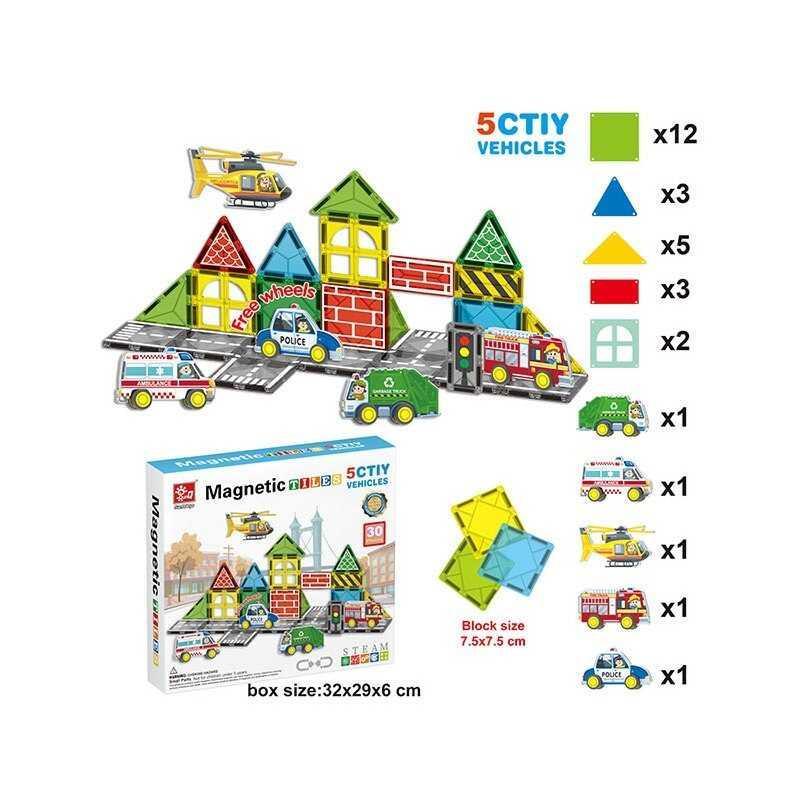 Набор с магнитными деталями sq 66001-2 (16) 30 элементов, 4 машины, 1 вертолет, в коробке