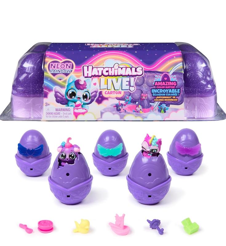 Фигурки неоновые hatchimals alive, neon rainbow egg carton toy with 5 mini figures in colo...