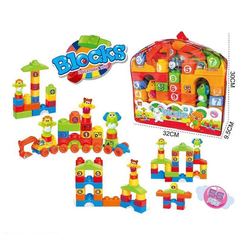 Игровой набор 3029 (24/2) с 56 крупными деталями, машинкой, забавными фигурками и блоками...