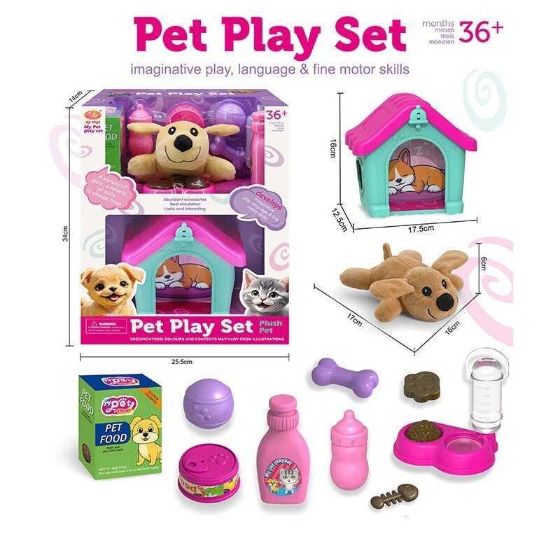 Игровой набор с плюшевой собачкой и аксессуарами В комплект входит мягкая плюшевая собачка и различные аксессуары для игры, которые помогают развивать воображение, речь и мелкую моторику у детей от 3 лет. - Мягкая плюшевая собачка - Игровой домик для питомца - Различные аксессуары: миска, бутылочка, игрушечный корм - Развивает воображение и навыки ухода за питомцем - Безопасные материалы, подходит для детей от 3 лет