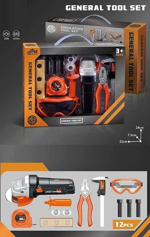 Развивающий игровой набор инструментов для детей Набор инструментов 778-15 создан для маленьких мастеров, мечтающих о настоящих строительных проектах. В комплект входит автоматическая болгарка на батарейках, различные инструменты и аксессуары, которые помогут развивать моторику рук и воображение. - Автоматическое вращение лезвия болгарки - Реалистичная имитация настоящих инструментов - Высокая детализация игровых элементов - Работает от 2 батареек типа AA - Различные гайки, шурупы для сюжетно-ролевых игр - Яркий дизайн в оранжевых, черных и серых цветах - Изготовлен из безопасного первичного пластика