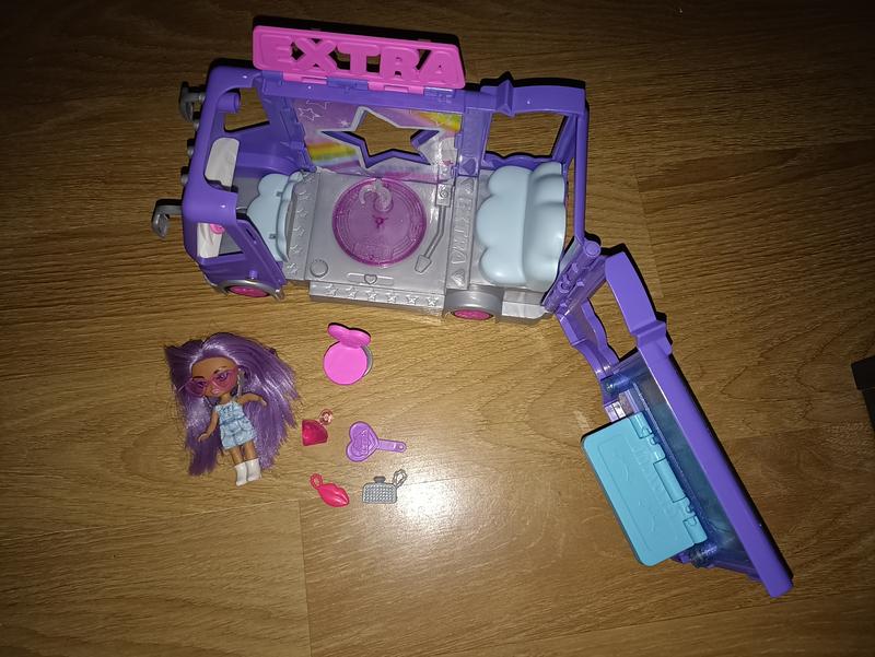 Набор Barbie Extra Mini Minis Барби Экстра Мини Минис Автобус Этот туристический автобус расширяется до 38 см в ширину, открывая несколько игровых зон, таких как туалетный столик, танцпол и место для 3 кукол в виде облака. В комплект также входит эксклюзивная кукла Barbie Extra Mini Minis со стильным нарядом и привлекательными аксессуарами! В набор входит одна кукла Barbie Extra Mini Minis в джинсовом платье со звездным принтом. В ее аксессуаров входят солнцезащитные очки в форме сердечек в виде падающих звезд, сумочка, белые ботинки и расческа. Состояние очень хорошее.