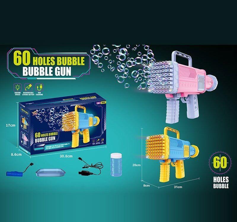 Подаруйте море радості та приємних емоцій як дітям, так і дорослим! Ця установка з мильними бульбашками стане справжнім хітом кожного свята! Іграшка виконана у форми стильної футуристичної зброї, але замість пострілів, вона видуває тільки безпечні бульбашки! Установка підсвічується та працює від акумулятора і ви зможете згенерувати цілу хмару мильних бульбашок за лічені секунди й без жодних зайвих зусиль. Також у комплекті з установкою йде пляшечка із мильною рідиною, яка виконана з дотриманням усіх норм безпеки, та бульбашки з неї виходять особливо великими та міцними й ще довго не лускають у повітрі. Особливості: - розміри установки: 20х8х31 см; - установка має 60 отворів для видування бульбашок; - установка підсвічується; - іграшка працює від акумулятора 3.7 V, дріт для підзарядки якого також додано до набору; - у комплекті з установкою йде пляшечка з рідиною для мильних бульбашок та таця для неї; - установка має знімну додаткову ручку.