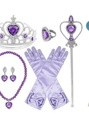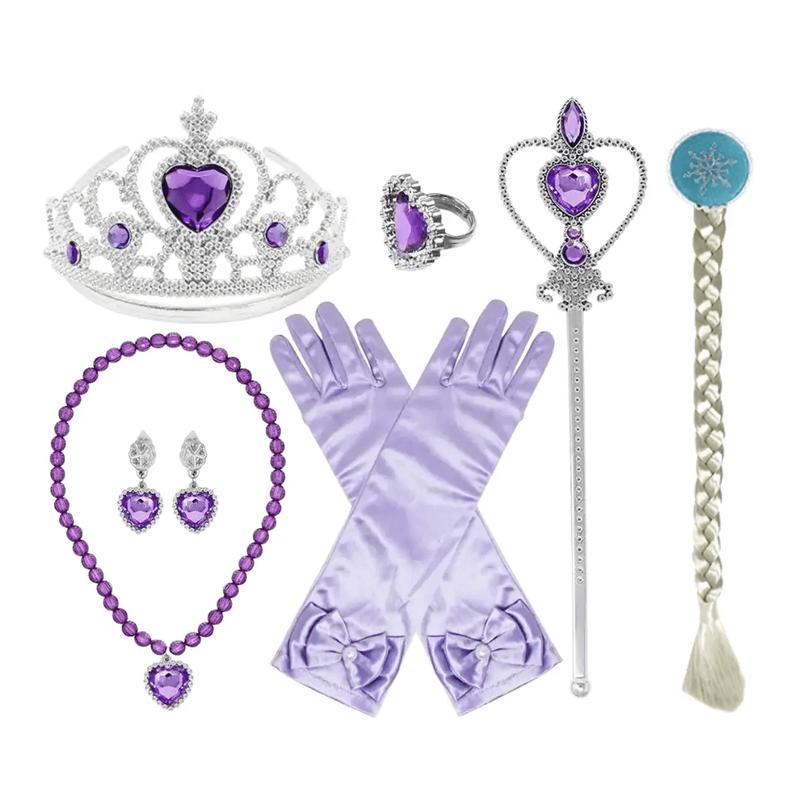Набор аксессуаров принцессы Рапунцель 660378 Аксессуары принцессы Рапунцель — роскошный набор для создания волшебного сказочного образа в стиле знаменитой принцессы с длинной косой. Яркие элементы, блестящие украшения и нежные детали делают комплект идеальным для детских праздников, фотосессий, утренников и тематических вечеринок. В комплект входит: - Атласные перчатки с бантом — придают образу элегантность и ощущение настоящего королевского стиля. - Корона — изящная диадема с декоративным сердечком, подчеркивающая образ сказочной принцессы. - Волшебная палочка в форме сердечка — стильный аксессуар для магического настроения. - Коса Рапунцель — длинная, красивая коса, которая мгновенно создает узнаваемый образ героини. - Набор украшений: колье, браслет, колечко, серьги-клипсы. Все элементы выдержаны в едином стиле и прекрасно сочетаются между собой. Такой комплект позволит девочке почувствовать себя настоящей принцессой Рапунцель и сделает любой праздник незабываемым.