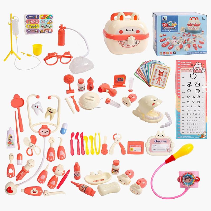 З цим набором малюк зможе організувати власну клініку! Тут є все необхідне для цікавих ігор: стетоскоп із підсвічуванням та звуком серцебиття, 2 термометри, молоточок та ліхтарик з підсвічуванням, набір дантиста, медичне приладдя та навіть апарат для вимірювання тиску. Усі інструменти зручно зберігати у яскравому боксі з вушками. Такий набір допомагає розвивати уяву, уважність та турботливість! Особливості: - розмір боксу: 18х17х18 см; - підсвічування стетоскопа, молоточка, ліхтарика та 2-х термометрів; - стетоскоп відтворює звук серцебиття; - усі звукові та світлові ефекти працюють від батарейок, що додані до комплекту; - в наборі: 2 термометри, стетоскоп, молоточок, набір дантиста, ліхтарик, муляжі ліків, медичне приладдя, інструменти для огляду, апарат для вимірювання тиску, бейджик, медична маска тощо; - набір підійде для тематичної гри у невеликій компанії; - набір розвиває дрібну моторику та уяву; Детальніше: **************************************************
