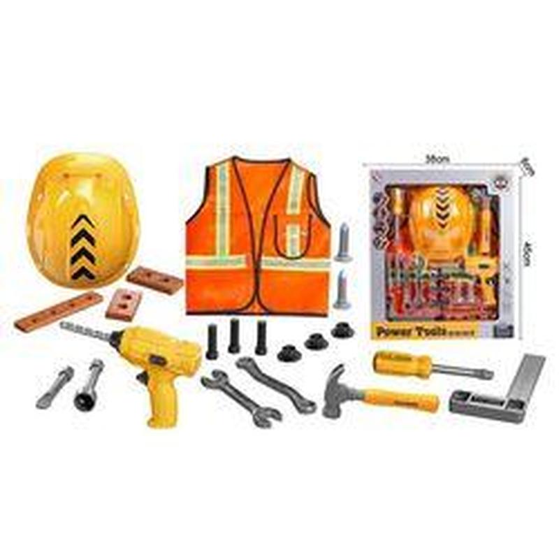 Цей набір юного будівельника стане чудовою іграшкою для дітей, які захоплюються технікою, інструментами та рольовими іграми. У комплект входить усе необхідне, щоб «попрацювати» як справжній майстер: каска, жилет зі світловідбивними смужками, різні інструменти та будівельні деталі. Іграшковий дриль виглядає реалістично та доповнює гру цікавими сюжетами. Завдяки великій кількості елементів дитина розвиває уяву, моторику та навички взаємодії з предметами. Особливості: - набір будівельника з каскою, жилетом та інструментами; - реалістичний дриль, гайкові ключі, молоток, викрутка, кутник, болти, гайки та будівельні блоки; - дриль має механічний принцип роботи та не потребує батарейок; - дриль має реверс; - жилет зі світловідбивними елементами; - зручна та безпечна для дітей конструкція інструментів; - розмір упаковки: 38×45×6 см; - сприяє розвитку моторики, фантазії та рольової гри. Розміри паковання: 38 см × 6 см × 45 см Паковання: Коробка Вік: від 3 років