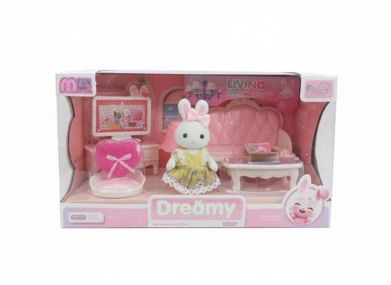 Набор «Флоксовые кролики By Dreamy» для гостиной – это идеальное дополнение для любой коллекции миниатюрной мебели. Этот набор включает в себя разнообразные предметы, которые создадут уютную и стильную гостиную для ваших флоксовых кроликов. В комплект входят: 1. Диван – удобный и стильный, выполненный в мягких пастельных тонах, идеально подходит для отдыха ваших кроликов.2. Торшер – изящный и добавляет уюта.3. тумбочка под телевизор – компактная и практичная, идеально подходит для размещения телевизора.4 Телевизор – современный и реалистичный, создающий атмосферу настоящей гостиной.5. Журнальный столик – на нем стоит корзинка с газетой и пультом, добавляя детали и реализм в интерьер.6. Лежак для домашнего любимца – мягкий и уютный, с подушечкой в ??форме сердечка, обеспечит комфорт вашему маленькому другу.7. Фигурка флоксового кролика – милый и очаровательный, станет главным героем вашей гостиной.