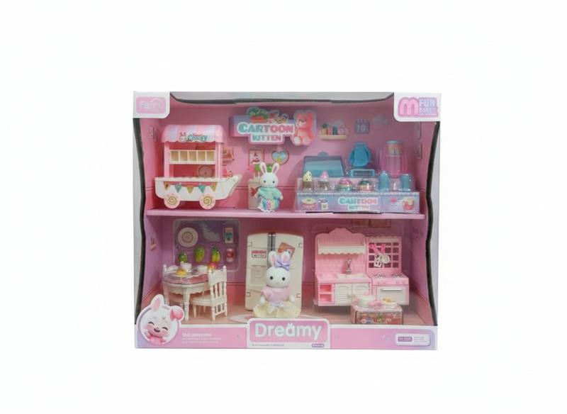 Очаровательный набор "Время десертов" подарит ребёнку массу идей для игры. Милые кролики с мягким флоксовым покрытием и множество кухонных аксессуаров создают атмосферу настоящего кафе. Детализированные предметы мебели и декора помогут придумать интересные игровые истории и разыгрывать разные сюжеты. Отличный подарок для сюжетно-ролевых игр. Особенности: Фигурки с флоксовым покрытием. Много мебели и аксессуаров. Яркий и реалистичный дизайн. Развивает воображение и творческое мышление. Характеристики: Размер коробки: 30*24*11 см Материал: пластик, текстиль, флок Комплектация: 2 игровые фигурки Холодильник Стол со стульями Кухонный набор Витрина с десертами Тележка с сладостями Украшения и аксессуары
