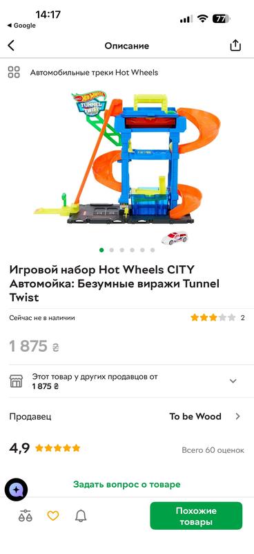 Откройте для себя веселье смены цвета в игровом наборе Автомойка: Безумные виражи от Hot Wheels City. Дети заезжают на машинке Hot Wheels, которая меняет цвет, к входу, где с помощью удобного механизма поднимаются на лифте на верхний этаж. Машинка попадает в специальный тоннель, где впервые меняет цвет, а затем мчится вниз, где ее ждет резервуар с ледяной холодной водой (не более 10ºС), чтобы изменить цвет снова. Дети также могут проявить творческий подход, создавая уникальные декоры с помощью брызг воды и частичного погружения в воду для получения крутых рисунков. В набор входит 1 машинка, меняющая цвет в масштабе 1:64. С этим набором дети в возрасте от трех лет смогут играть в увлекательную игру часами. Цвета и внешний вид могут отличаться. Внимание: Иногда машинка не восстанавливает свой предыдущий цвет. Причина заключается в том, что вода недостаточно холодная для срабатывания функции, ведь летом из-под крана течет вода температурой 18-20 ºС. В этом случае попробуйте: В емкость с водой бросить несколько кубиков льда, и погрузить машинку снова; На некоторое время положить машинку в морозильную камеру, чтобы цвет восстановился.