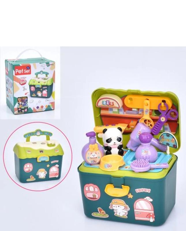 Набор 2 в 1 Чемодан 17-16-12,5 см Стол 21,5-16,5-16-16 см Панда, фен, ножницы, аксессуары